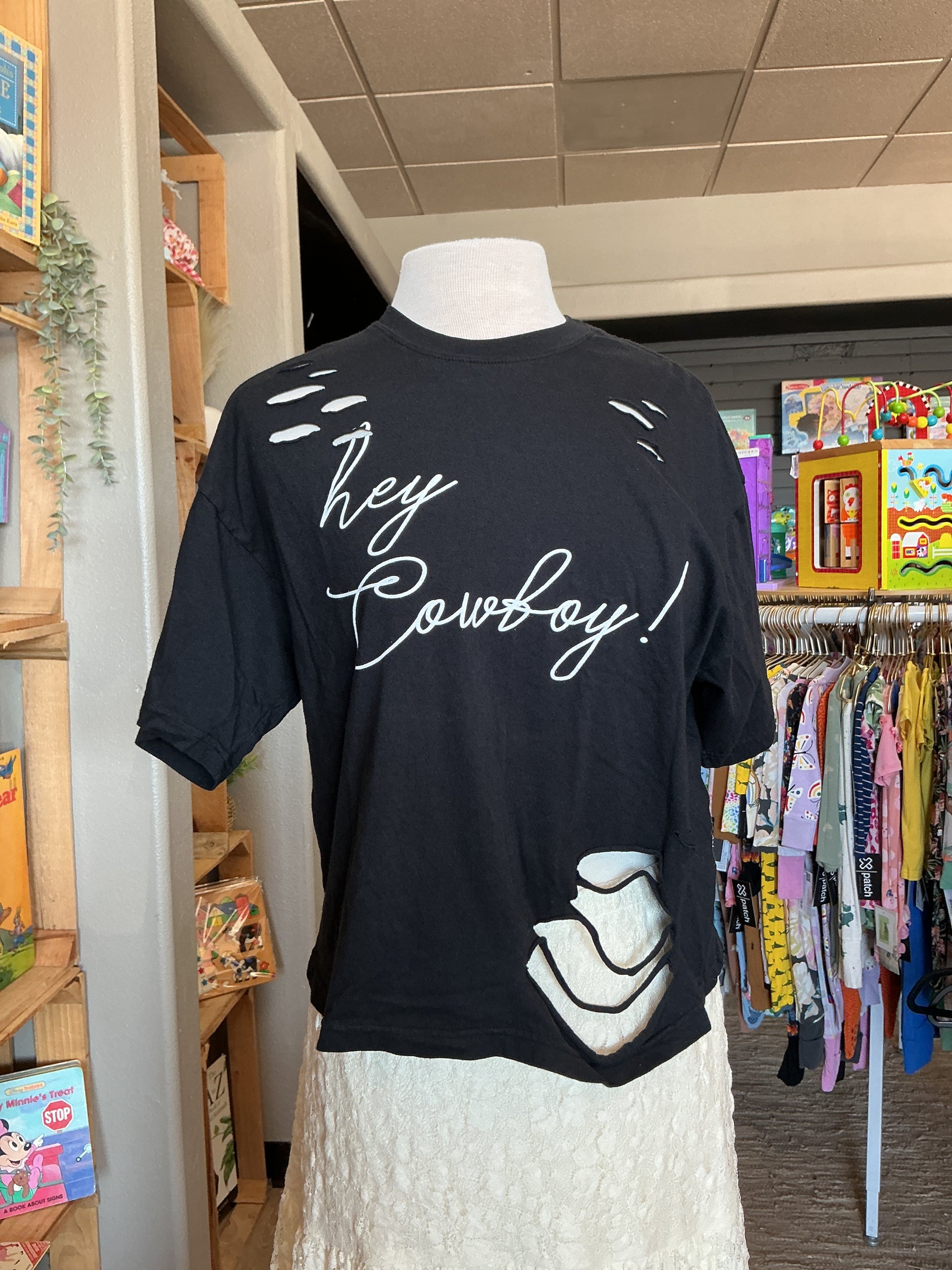 Womens Small Distressed Hey Cowboy Tee